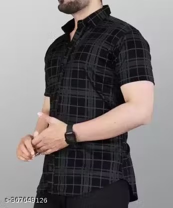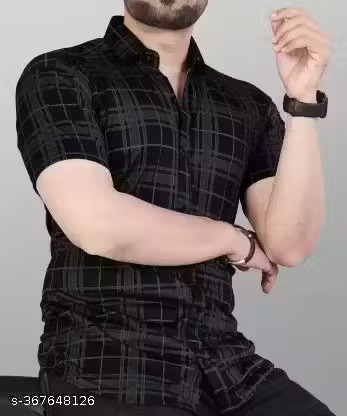 Name : STI Men’s Checked Regular Spread Collar Black Shirts